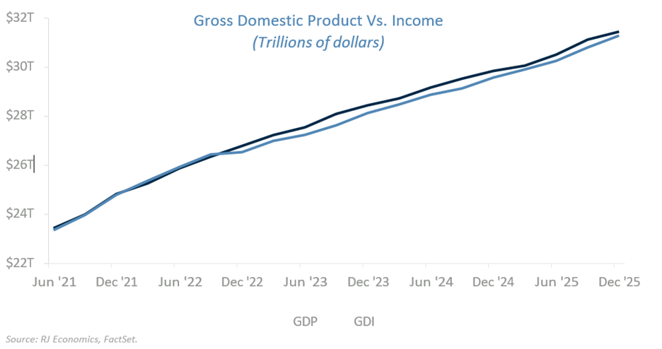 In February, household spending was supported by a further drawdown of savings, which pushed the personal saving rate down to 4.0% from 4.5% in January. This behavior may help smooth consumption temporarily, but it is clearly not sustainable. One important caveat is that income data are often revised and can be imprecise in real time. As recent data show, nominal gross domestic income has been systematically underestimated since 2022, suggesting that actual income growth may be somewhat stronger than currently reported. This implies that households may have slightly more financial cushioning than the official numbers suggest. Even so, this margin is unlikely to be sufficient for consumers to remain fully engaged in the economy without a renewed pickup in employment and income growth.